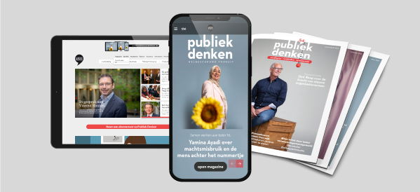 Publiek Denken is hét platform voor verdieping en discussie over de kwaliteit van het openbaar bestuur. Adverteer in het magazine (verschijnt 8 keer per jaar), in de e-zine, op de website en onze e-nieuwsbrief en bereik de top van de publieke sector.
